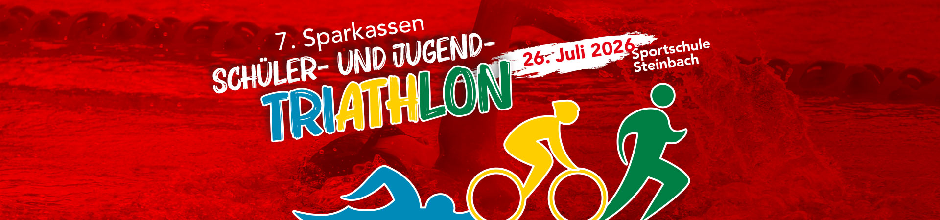 In diesem Jahr mit neuem Veranstaltungsort an der Sportschule Steinbach.Weitere Infos zum Schüler- und Jugend-Triathlon 2026 folgen …