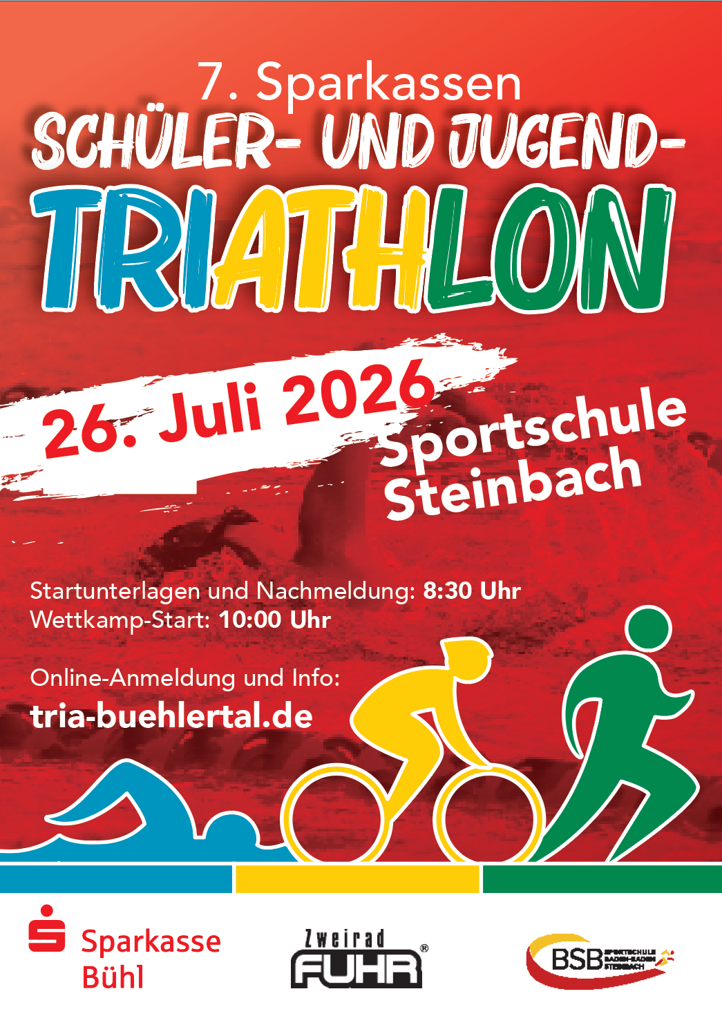 Wir freuen uns, auch in diesem Jahr wieder den Schüler- und Jugend-Triathlon austragen zu können – 2026 erstmals an einem neuen Veranstaltungsort: der Sportschule Steinbach.